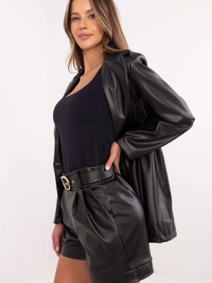 Οι κομψές γυναικείες δερμάτινες σορτς είναι μια κομψή πρόταση για γυναίκες που εκτιμούν την άνεση και την μοντέρνα εμφάνιση. Κατασκευασμένες από υψηλής ποιότητας μείγμα πολυεστέρα και πολυουρεθάνης, παρουσιάζονται εξαιρετικά εντυπωσιακά χάρη στην απλή υφή του υλικού. Η ψηλή μέση τονίζει όμορφα τη μέση, ενώ οι φαρδιές πλαινές τσέπες προσθέτουν μια αίσθηση ελαφρότητας και ελευθερίας. Το μοντέλο χωρίς κλείσιμο, με ραμμένο λάστιχο στη μέση στο πίσω μέρος, εγγυάται άνετη εφαρμογή και τέλεια εφαρμογή. Επιπλέον, τα πρακτικά πλάγια τσεπάκια και η ζώνη που κλείνει προσθέτουν στοιχεία τόσο λειτουργικά όσο και διακοσμητικά. Ιδανικές για καθημερινή χρήση, ενώ σε συνδυασμό με μια κομψή μπλούζα θα δημιουργήσουν μια εκλεπτυσμένη εμφάνιση για ειδικές περιστάσεις.
