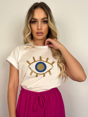 T-shirt Λευκό με Τύπωμα Μάτι