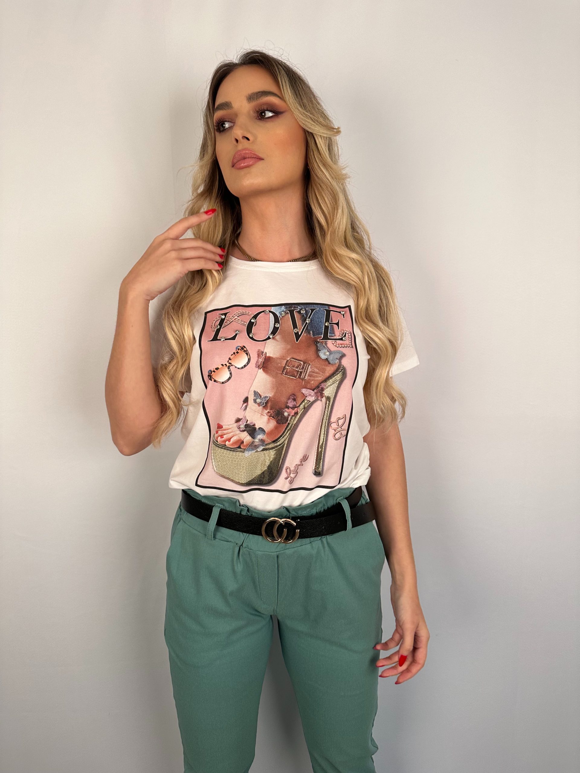 T-shirt σε λευκό χρώμα, με τύπωμα love