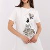 Προσθέστε λίγη λάμψη στις καθημερινές σας εμφανίσεις με αυτό το μοναδικό γυναικείο t-shirt σε casual στυλ. Ραμμένο από ευχάριστο στην αίσθηση βαμβάκι με προσθήκη ελαστάνης, προσφέρει άνεση κατά τη διάρκεια της χρήσης και ελαφριά εφαρμογή στην σιλουέτα. Το t-shirt έχει κανονικό μήκος με κοντά μανίκια και στρογγυλή λαιμόκοψη, ιδανικό για καθημερινή χρήση, στη δουλειά, για βόλτες ή συναντήσεις με φίλους. Ο μοναδικός του χαρακτήρας τονίζεται από την εντυπωσιακή εφαρμογή στο μπροστινό μέρος, συνδυάζοντας εκτύπωση, κεντήματα και τζετ, που προσδίδει σύγχρονη και θηλυκή εμφάνιση. Ένα επιπλέον στοιχείο είναι το δέσιμο στη αριστερή πλευρά στο κάτω μέρος, που προσθέτει ελαφρότητα και διακριτική πρωτοτυπία. Αυτό το t-shirt είναι ο ιδανικός συνδυασμός άνεσης και στυλ, δεν πρέπει να λείπει από τη ντουλάπα σας!