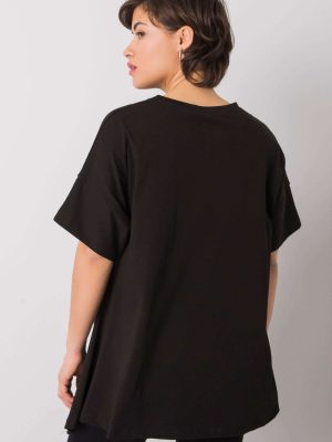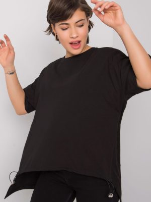 Γυναικείο t-shirt με κοντά μανίκια και στρογγυλή λαιμόκοψη. Εκτεταμένο κάτω μέρος.