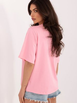 Η γυναικεία μπλούζα T-shirt basic με casual χαρακτήρα είναι ένα απαραίτητο στοιχείο της καθημερινής γκαρνταρόμπας. Η λεία γραμμή την καθιστά εξαιρετικά ευέλικτη και εύκολη στην ενδυμασία, συνδυάζεται τέλεια τόσο με τζιν όσο και με φούστα ή αθλητικά παντελόνια. Κατασκευασμένη από υψηλής ποιότητας μείγμα βαμβακιού και ελαστάνης, εξασφαλίζει άνεση κατά την εφαρμογή, αναπνοή και ελαφρύ ταιριάξιμο με τη σιλουέτα. Το κανονικό μήκος και το κοντό μανίκι κάνουν το μοντέλο ιδανικό για καθημερινή χρήση, ανεξάρτητα από την εποχή. Το T-shirt διαθέτει κλασικό, στρογγυλό ντεκολτέ που αναδεικνύει το διαχρονικό και универсαλ стиль του.