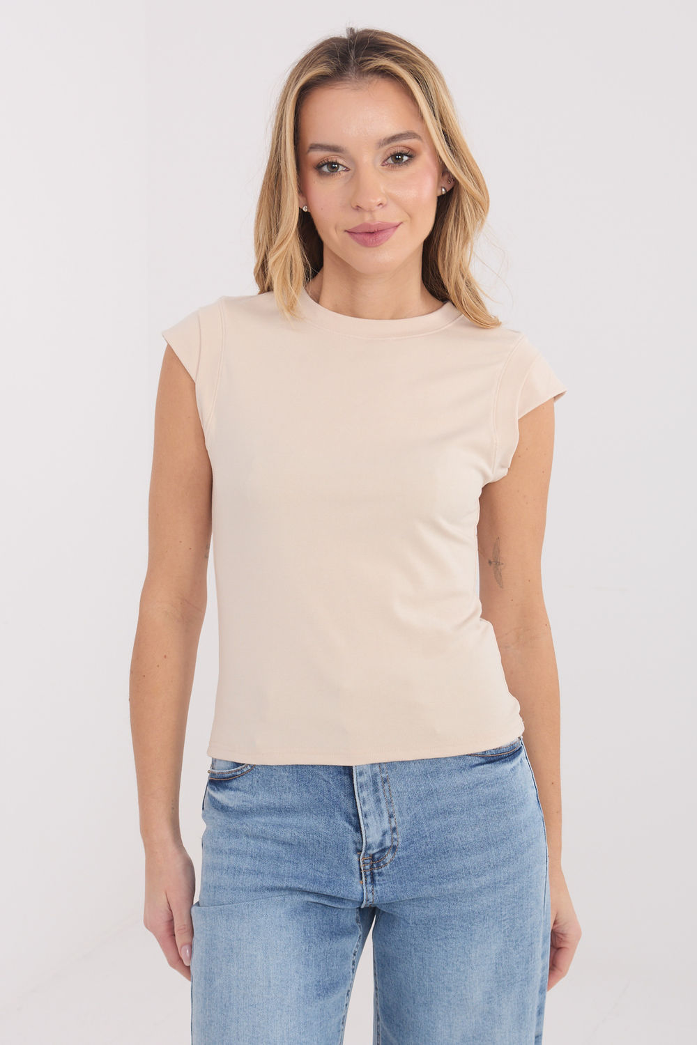 Ένα casual τοπ είναι μια καθολική βάση για καθημερινές στυλιστικές προτάσεις. Κατασκευασμένο από μαλακό και ελαστικό ύφασμα από βισκόζη με προσθήκη ελαστάνης, διασφαλίζει υψηλή άνεση κατά τη διάρκεια της χρήσης καθώς και καλή προσαρμογή στη σιλουέτα. Το λείο υλικό του προσδίδει έναν μινιμαλιστικό, διαχρονικό χαρακτήρα. Το μοντέλο έχει κοντό μήκος, χωρίς μανίκια, με κλασικό στρογγυλό λαιμόκοψη, και είναι ιδανικό για καθημερινή χρήση, τόσο σε συνδυασμό με τζιν, φούστα, όσο και κάτω από σακάκι ή cardigan. Ένα ελαφρύ, άνετο και πρακτικό τοπ, ιδανικό για τη δημιουργία πολλών χαλαρών στυλιστικών συνδυασμών.