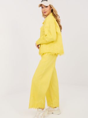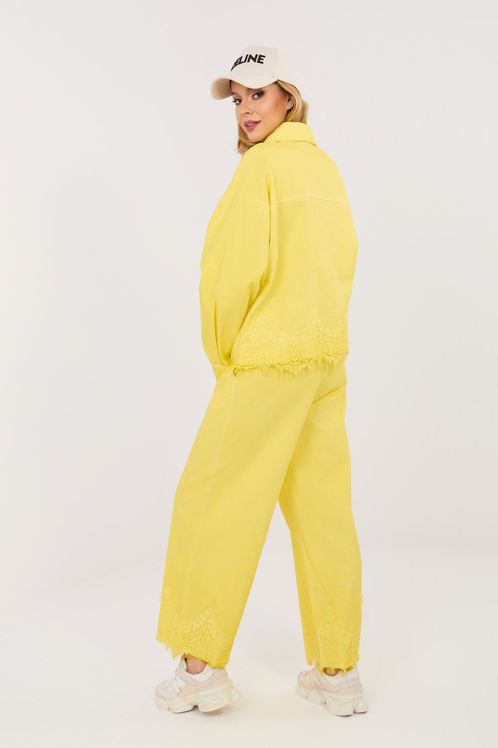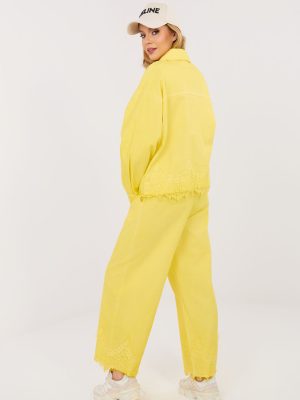 Οι γυναικείες τζιν παντελόνες τύπου wide leg είναι μια στυλάτη και άνετη πρόταση για καθημερινή χρήση, ιδανική για καλοσυνάτες στυλιστικές επιλογές. Η λεία γραμμή και οι φαρδιές καμπάνες τους προσδίδουν μοντέρνο, χαλαρό χαρακτήρα και εξασφαλίζουν άνεση κατά τη διάρκεια όλης της ημέρας. Το παντελόνι συνδυάζεται τέλεια τόσο με ένα κλασικό T-shirt, όσο και με μια κομψή μπλούζα. Το μοντέλο είναι κατασκευασμένο από υψηλής ποιότητας βαμβάκι, που εγγυάται ανθεκτικότητα και άνεση χρήσης. Η ψηλή μέση αναδεικνύει όμορφα τη μέση και διαμορφώνει τη σιλουέτα, ενώ η ραμμένη πίσω στην μέση ελαστική ζώνη παρέχει καλύτερη εφαρμογή και επιπλέον άνεση. Το κλασικό φερμουάρ και το κουμπί, καθώς και οι πλαϊνές τσέπες, αυξάνουν τη λειτουργικότητα του παντελονιού. Η διακοσμητική δαντέλα στο κάτω μέρος των καμπανών προσθέτει μια λεπτή, γυναικεία πινελιά, που ξεχωρίζει αυτό το μοντέλο από τα κλασικά τζιν.