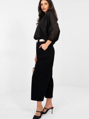 Μοντέρνα γυναικεία τζιν παντελόνια τύπου wide leg, που συνδυάζουν άνεση με σύγχρονο στυλ. Κατασκευασμένα από υψηλής ποιότητας βαμβάκι με προσθήκη ελαστάνης, εξασφαλίζουν άνεση στην εφαρμογή και ελευθερία κινήσεων καθ’ όλη τη διάρκεια της ημέρας. Το μοντέλο διαθέτει ψηλή μέση και ραμμένη ελαστική ταινία στη μέση, χάρη στην οποία προσαρμόζεται ιδανικά στη σιλουέτα χωρίς την ανάγκη κλεισίματος. Οι πτυχές στο μπροστινό μέρος προσθέτουν κομψότητα και οπτικά αδυνατίζουν τα πόδια. Οι φαρδιές μπατζάκια τονίζουν τον μοντέρνο χαρακτήρα των παντελονιών και εξασφαλίζουν ελαφρότητα στη στυλιστική προσέγγιση. Τα παντελόνια διαθέτουν πλαϊνές, σωληνωτές τσέπες καθώς και κλειστό ζωνάκι, που αποτελεί πρακτική και στιλάτη προσθήκη. Το απλό σχέδιο καθιστά το μοντέλο κατάλληλο τόσο για καθημερινές εμφανίσεις, όσο και για εργασία σε casual εκδοχή. Καθολικά, άνετα και στιλάτα, ιδανική βάση για πολλές συνθέσεις.