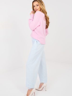 Τα γυναικεία τζιν παντελόνια τύπου wide leg είναι μια κομψή και άνετη πρόταση για καθημερινή χρήση, ιδανικά για casual εμφανίσεις. Η απλή γραμμή και οι φαρδιές στριφώματα τους δίνουν μια μοντέρνα, χαλαρή αίσθηση και διασφαλίζουν άνεση κατά τη διάρκεια της ημέρας. Τα παντελόνια ταιριάζουν τέλεια τόσο με κλασικό T-shirt, όσο και με κομψό μπλουζάκι. Το μοντέλο είναι κατασκευασμένο από υψηλής ποιότητας βαμβάκι, το οποίο εγγυάται αντοχή και άνεση στη χρήση. Η ψηλή μέση τονίζει όμορφα τη μέση και σμιλεύει τη σιλουέτα, ενώ η ενσωματωμένη μαλακή ελαστική ζώνη στο πίσω μέρος της μέσης προσφέρει καλύτερη εφαρμογή και επιπλέον άνεση. Το κλασικό κλείσιμο με φερμουάρ και κουμπί, καθώς και οι πλάγιες, μπαλέτες τσέπες αυξάνουν τη λειτουργικότητα του παντελονιού. Η διακοσμητική δαντέλα στο κάτω μέρος των ποδιών αποτελεί έναν λεπτό, θηλυκό τόνο που ξεχωρίζει αυτό το μοντέλο σε σχέση με τα κλασικά τζιν.
