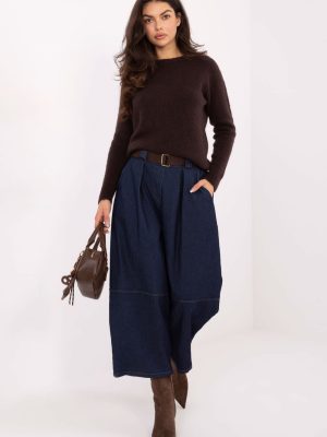Γυναικείς κανονικοί τζιν παντελόνες τύπου culotte, ιδανικές για καθημερινές εμφανίσεις. Φτιαγμένες από μείγμα βαμβακιού και ελαστάνης, προσφέρουν άνεση, ελευθερία κίνησης και ελαστικότητα. Ο ομαλός υλικός τονίζει τον καθολικό χαρακτήρα του μοντέλου, κάνοντάς το εύκολο να προσαρμοστεί σε πολλές στυλιστικές επιλογές. Το μοντέλο διαθέτει ψηλή μέση, ενώ στο πίσω μέρος της μέσης έχει ραμμένο λάστιχο, που αυξάνει την άνεση κατά τη διάρκεια της φθοράς και επιτρέπει τέλεια προσαρμογή. Συνοδεύεται από ζώνη που κλείνει, η οποία επιτρέπει να τονιστεί ακόμα περισσότερο η μέση. Οι φαρδιές γραμμές που είναι χαρακτηριστικές για το στυλ culotte προσδίδουν στο παντελόνι μια μοντέρνα και άνετη αίσθηση. Το παντελόνι δεν διαθέτει κλασικό κλείσιμο, πράγμα που αυξάνει την άνεση χρήσης. Είναι εξοπλισμένο με πλευρικές, εισαγόμενες τσέπες που προσθέτουν πρακτικότητα στην καθημερινότητα. Είναι μια ιδανική πρόταση για γυναίκες που εκτιμούν την άνεση, τη μοντέρνα σχεδίαση και το casual, αστικό στυλ.