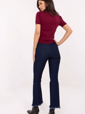 Μοντέρνα και άνετα γυναικεία τζιν καμπάνα με εντυπωσιακή ολοκλήρωση, με φθαρμένα παντελόνια στο κάτω μέρος που προσθέτουν έναν ελαφρώς ροκ, casual χαρακτήρα στην εμφάνιση. Κατασκευασμένα από ανθεκτικό και ελαστικό μείγμα βαμβακιού, πολυεστέρα και ελαστάνης, προσφέρουν άνεση και ελευθερία κινήσεων καθ’ όλη τη διάρκεια της ημέρας. Το μοντέλο έχει ψηλή μέση με ραμμένο λάστιχο στη μέση, που εγγυάται τέλεια εφαρμογή στη σιλουέτα και άνεση, ενώ οι φαρδιές παντελόνες τύπου καμπάνα οπτικά επιμηκύνουν τα πόδια και δημιουργούν μια μοντέρνα, χαλαρή εμφάνιση. Τα τζιν διαθέτουν ομαλό σχέδιο υφάσματος, έλλειψη κλασικής κλεισίματος και έλλειψη τσέπης, που τονίζει τον μινιμαλιστικό, μοντέρνο χαρακτήρα. Είναι μια ιδανική πρόταση για καθημερινές, casual εμφανίσεις, συνδυάζοντας άνεση με ζωντανό, μοντέρνο σχέδιο.