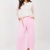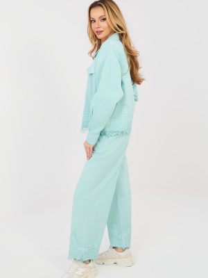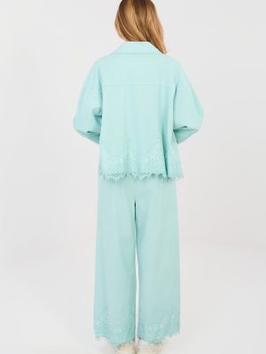 Τα γυναικεία τζιν παντελόνια τύπου wide leg είναι μια κομψή και άνετη επιλογή για καθημερινή χρήση, ιδανικά για casual στυλ. Η απλή γραμμή και οι φαρδιές περασμένες φούντες τους προσδίδουν μοντέρνο, ανεπίσημο χαρακτήρα και εξασφαλίζουν άνεση κατά τη διάρκεια όλης της ημέρας. Τα παντελόνια συνδυάζονται τέλεια τόσο με κλασικό T-shirt όσο και με κομψό πουκάμισο. Το μοντέλο είναι κατασκευασμένο από υψηλής ποιότητας βαμβάκι, που εγγυάται αντοχή και άνετη χρήση. Η ψηλή μέση αναδεικνύει όμορφα τη μέση και μορφοποιεί τη σιλουέτα, ενώ η ραμμένη πίσω ελαστική ζώνη προσφέρει καλύτερη εφαρμογή και επιπλέον άνεση. Το κλασικό κούμπωμα με φερμουάρ και κουμπί, καθώς και οι πλευρικές τσέπες κάνουν τα παντελόνια πολύ λειτουργικά. Η διακοσμητική δαντέλα στο κάτω μέρος των ποδιών αποτελεί μια διακριτική, θηλυκή λεπτομέρεια που ξεχωρίζει αυτό το μοντέλο από τα κλασικά τζιν.