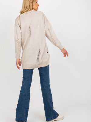 Μακρυμάνικη ζακέτα με κουμπιά. Πουλόβερ με λαιμόκοψη καρδιάς και διακοσμητικές τρύπες.