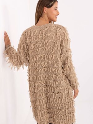 Γυναικίος cardigan με casual χαρακτήρα, ιδανικός για καθημερινές περιστάσεις. Κατασκευασμένος από μαλακό και ευχάριστο στην αφή μείγμα πολυακρυλικού, πολυαμιδίου, βισκόζης και μαλλιού, προσφέρει ζεστασιά και άνεση κατά την εφαρμογή. Το μοντέλο χωρίς κλείσιμο έχει μήκος μέχρι το γόνατο, διαθέτει μακριά μανίκια και η ποικιλία της υφής του υλικού σε συνδυασμό με διακοσμητικές φούντες σε όλη την επιφάνεια προσδίδει στο cardigan ελαφρότητα και μοντέρνο, χαλαρό χαρακτήρα. Ιδανικό για στιλιστικές συνθέσεις σε casual στυλ.