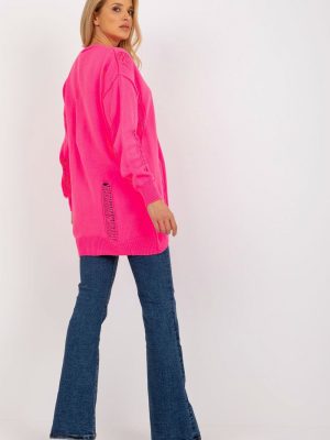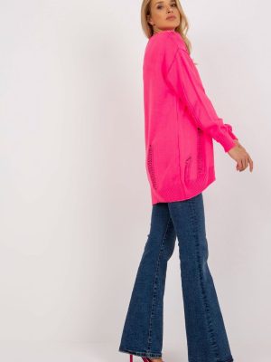 Μακρυμάνικη ζακέτα με κουμπιά. Πουλόβερ με λαιμόκοψη καρδιάς και διακοσμητικές τρύπες.