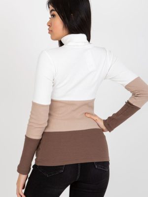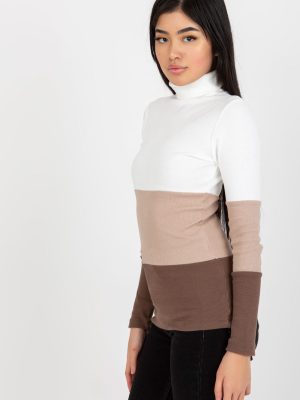 Μακρυμάνικο πουλόβερ με ζιβάγκο, από ύφασμα με ραβδώσεις σε τρία χρώματα.