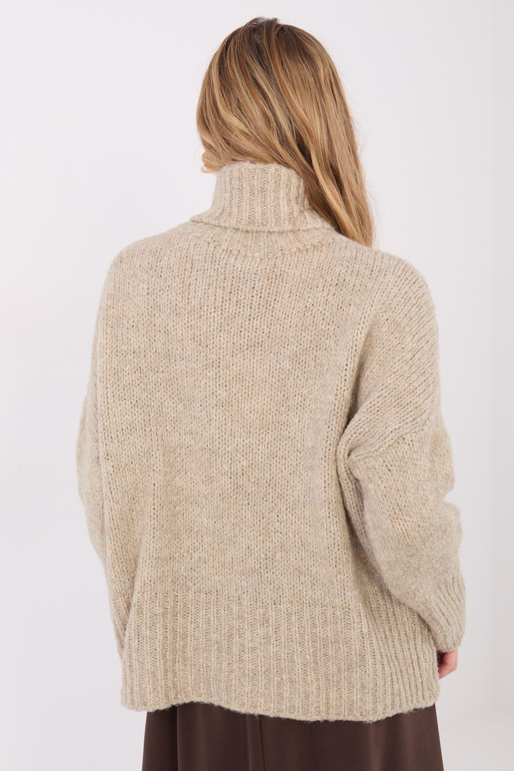 Ο γυναικείος πουλόβερ με ψηλό λαιμό και παχύ πλέξιμο είναι η ιδανική πρόταση για δροσερές ημέρες, συνδυάζοντας άνεση με διαχρονικό στυλ. Κατασκευασμένο από υψηλής ποιότητας μείγμα ακρυλίου, πολυαμιδίου, βισκόζης και μάλλινου υλικού, προσφέρει ζεστασιά, απαλότητα και άνεση καθ’ όλη τη διάρκεια της ημέρας. Ο μοντέλο με κανονικό μήκος και μακριά μανίκια είναι ιδανικό τόσο για καθημερινές στυλιστικές προτάσεις όσο και για τη δουλειά. Το ομαλό σχέδιο υπογραμμίζει τον καθολικό, καθημερινό χαρακτήρα του, ενώ η απουσία κουμπώματος εξασφαλίζει ελευθερία στη χρήση. Ο ψηλός λαιμός προστατεύει αποτελεσματικά από το κρύο και δίνει στο πουλόβερ μια κομψή, περιποιημένη εμφάνιση, που συνδυάζεται εύκολα με τζιν, υφασμάτινα παντελόνια ή φούστες.